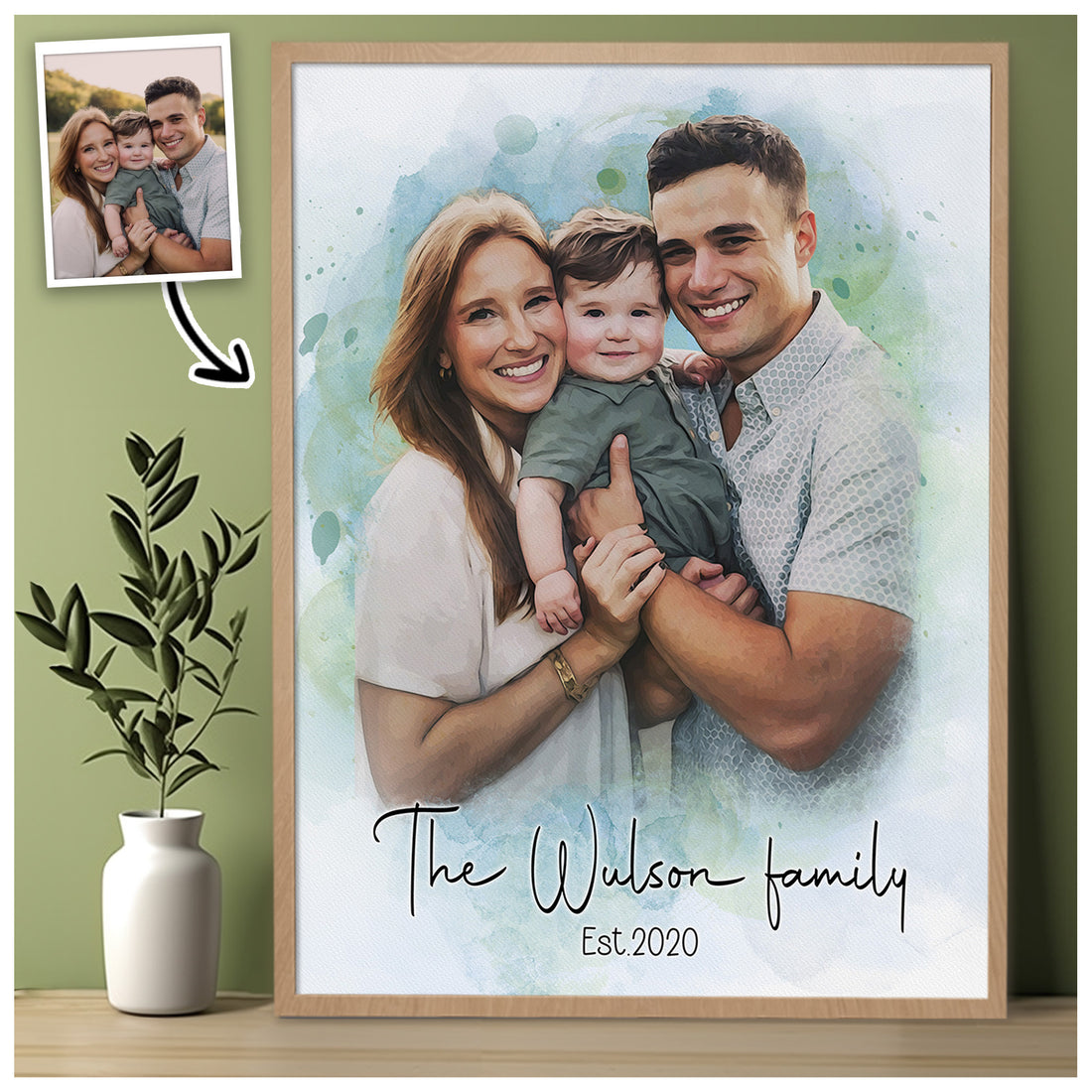 Personalized Watercolor Family Portrait Canvas from Photo – Watercolor Home Decor Keepsake