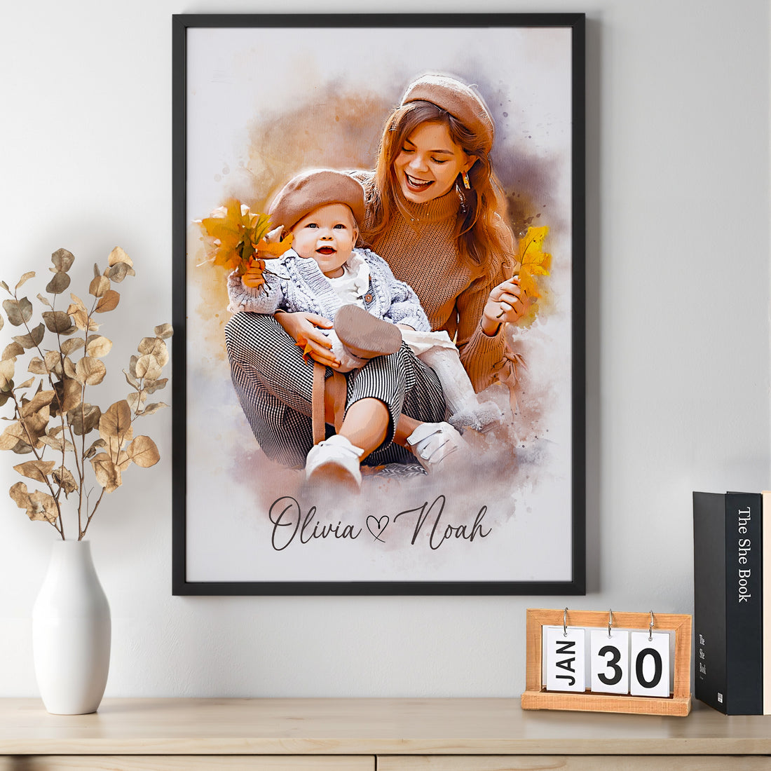 Personalized Watercolor Mom Portrait Canvas from Photo - Custom Mother’s Day Wall Art Gift