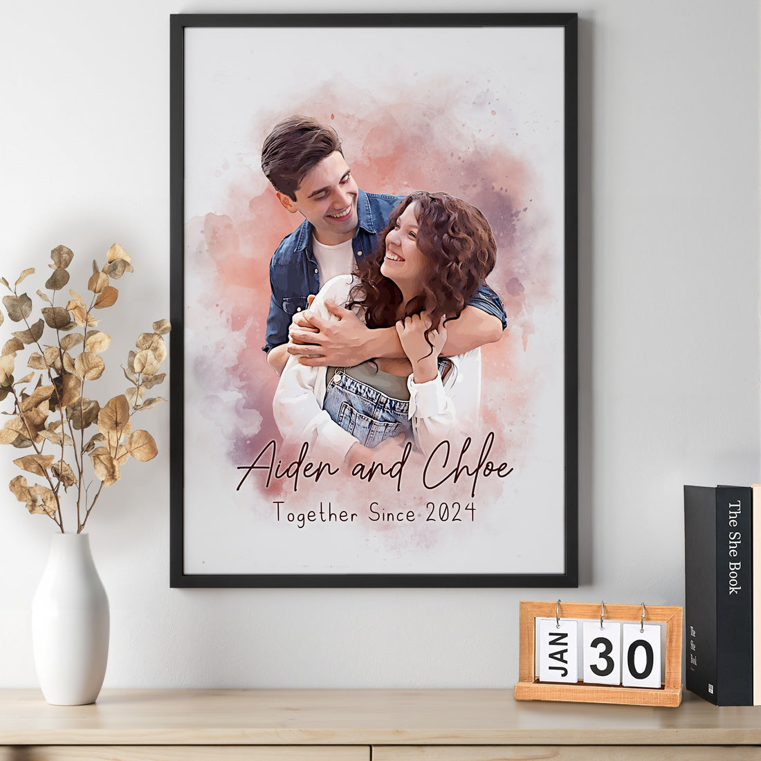 Personalized Watercolor Couple Portrait Canvas from Photo – Custom Couple Wall Art for Anniversary