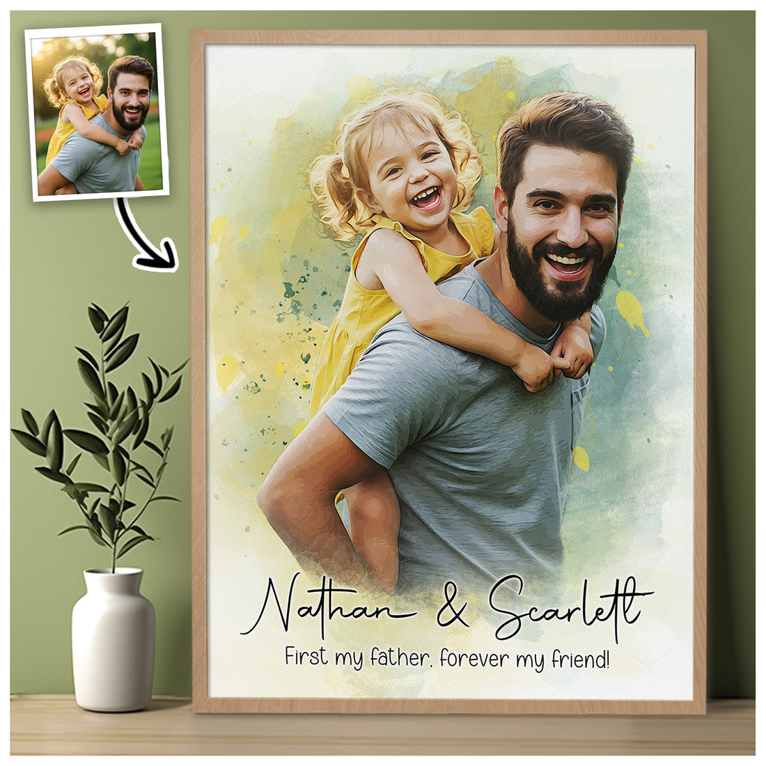 Custom Dad Portrait Canvas from Photo – Watercolor Father’s Day Wall Art Gift