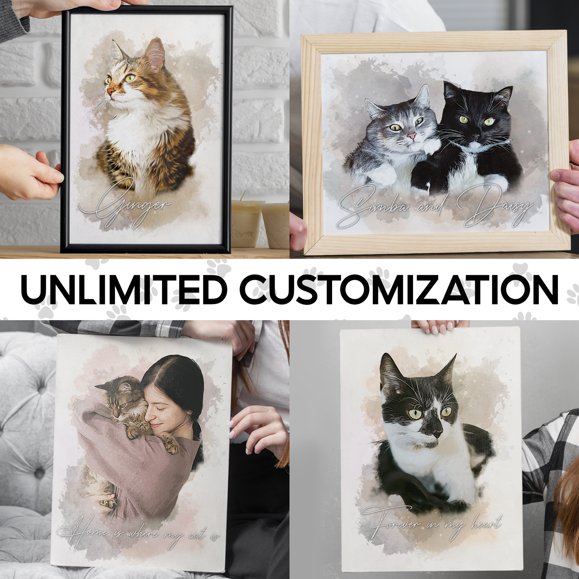 Custom Watercolor Cat Portrait Canvas, Personalized Gift for Cat Lovers