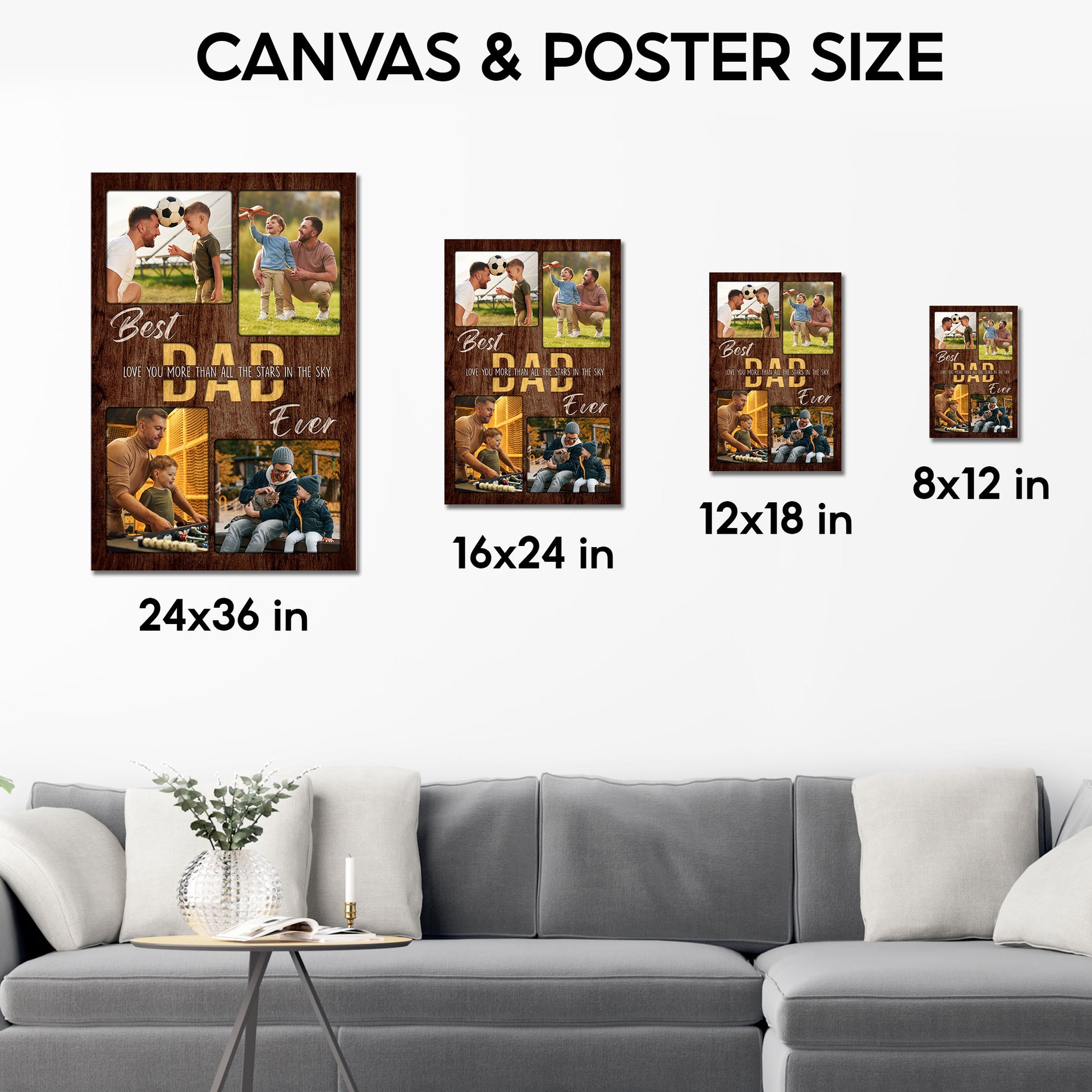 Love You More Than All The Stars Best Dad Ever Vertical Photo Collage Canvas, Father's Day Rustic Wood Gift for Daddy