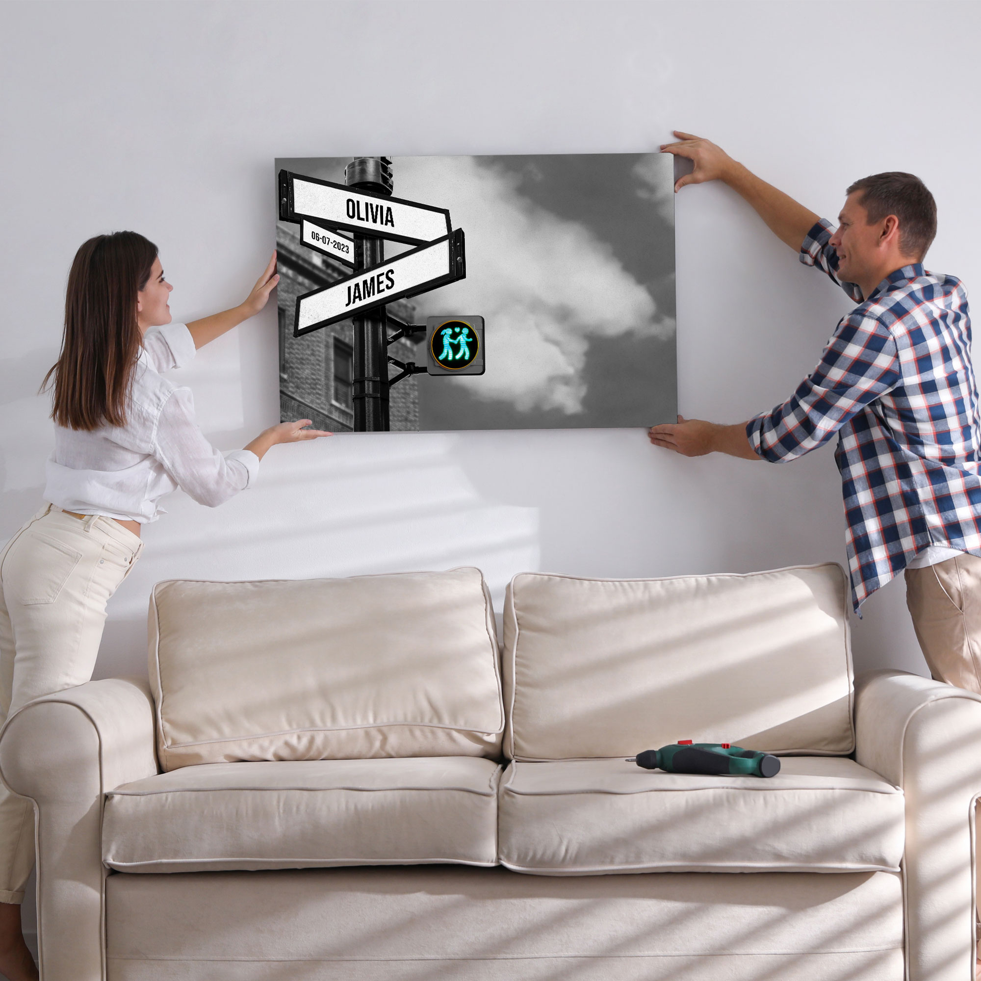 Personalized Canvas Vintage Street Sign For Couples, Custom Couple Name And Date Crossroads Lights