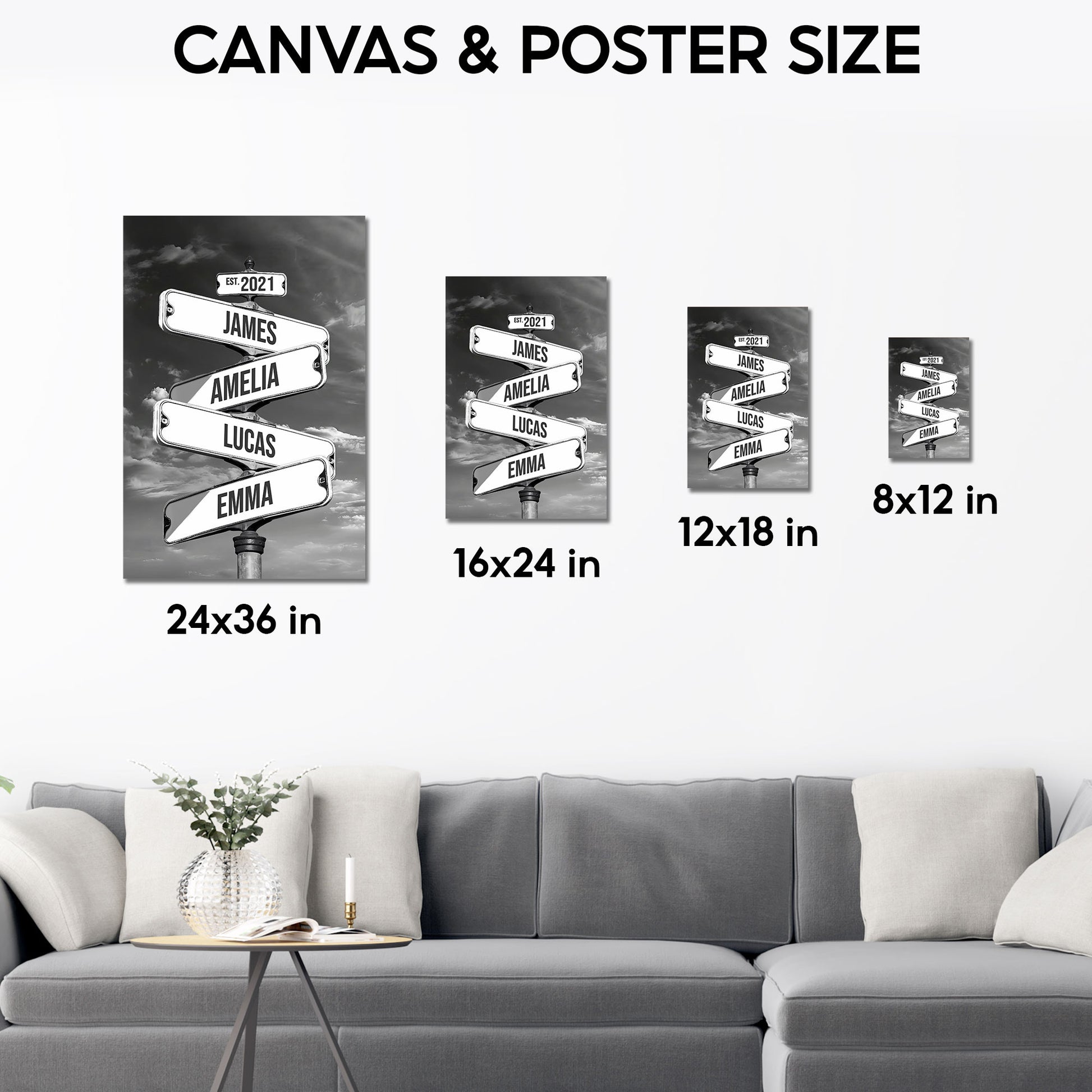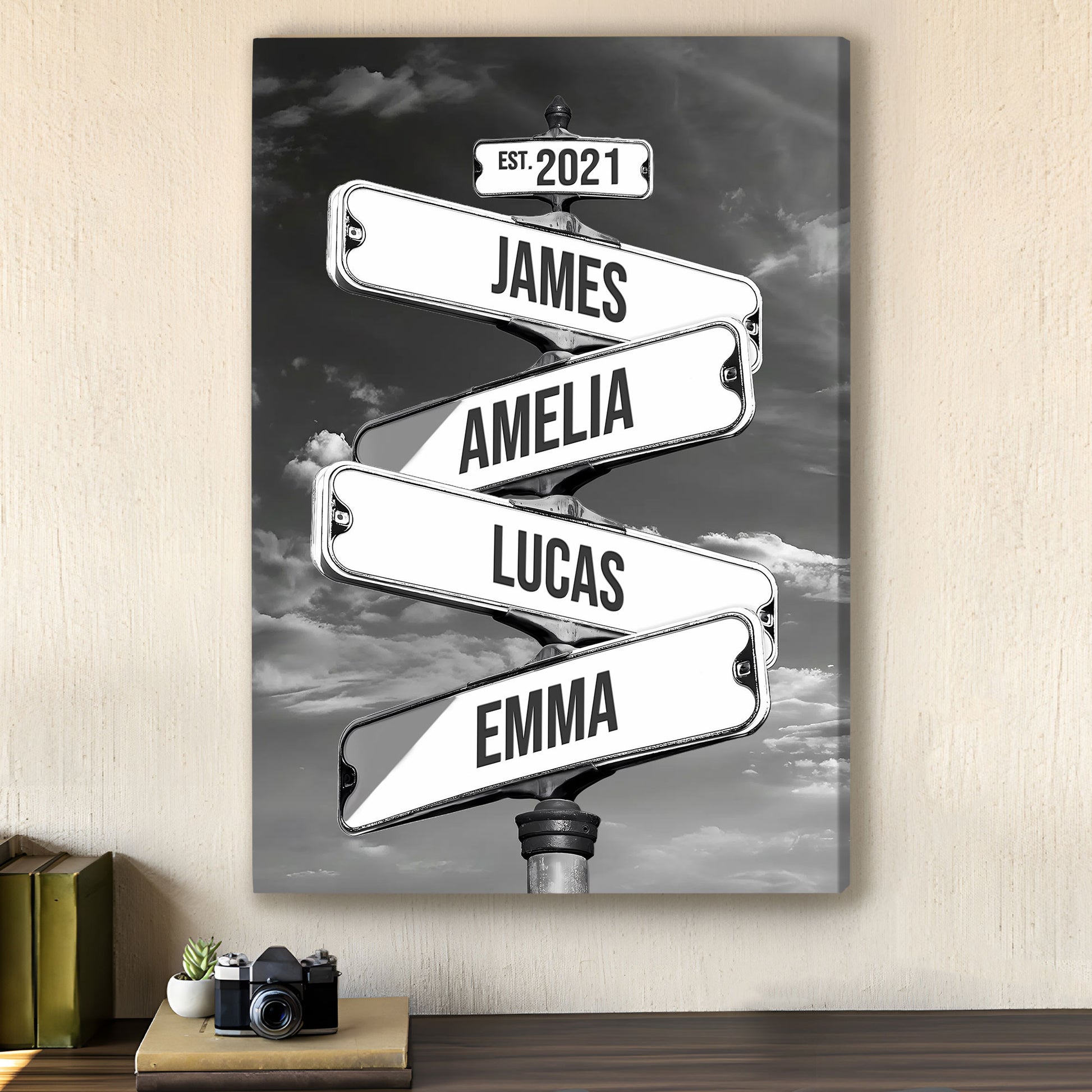 Personalized Family Crossroads Street Sign Canvas, Custom Multiple Name Date Wall Art Stormy Sky