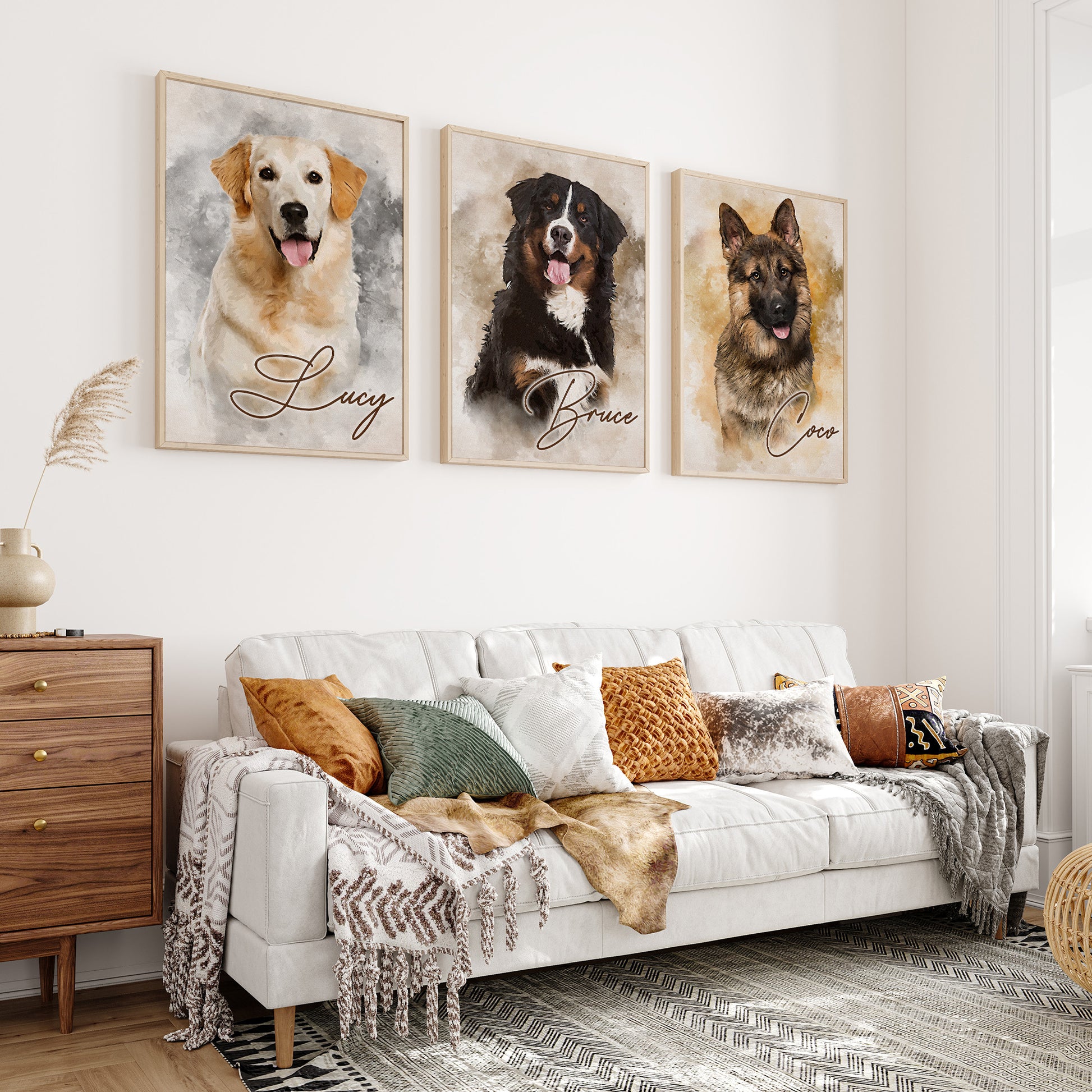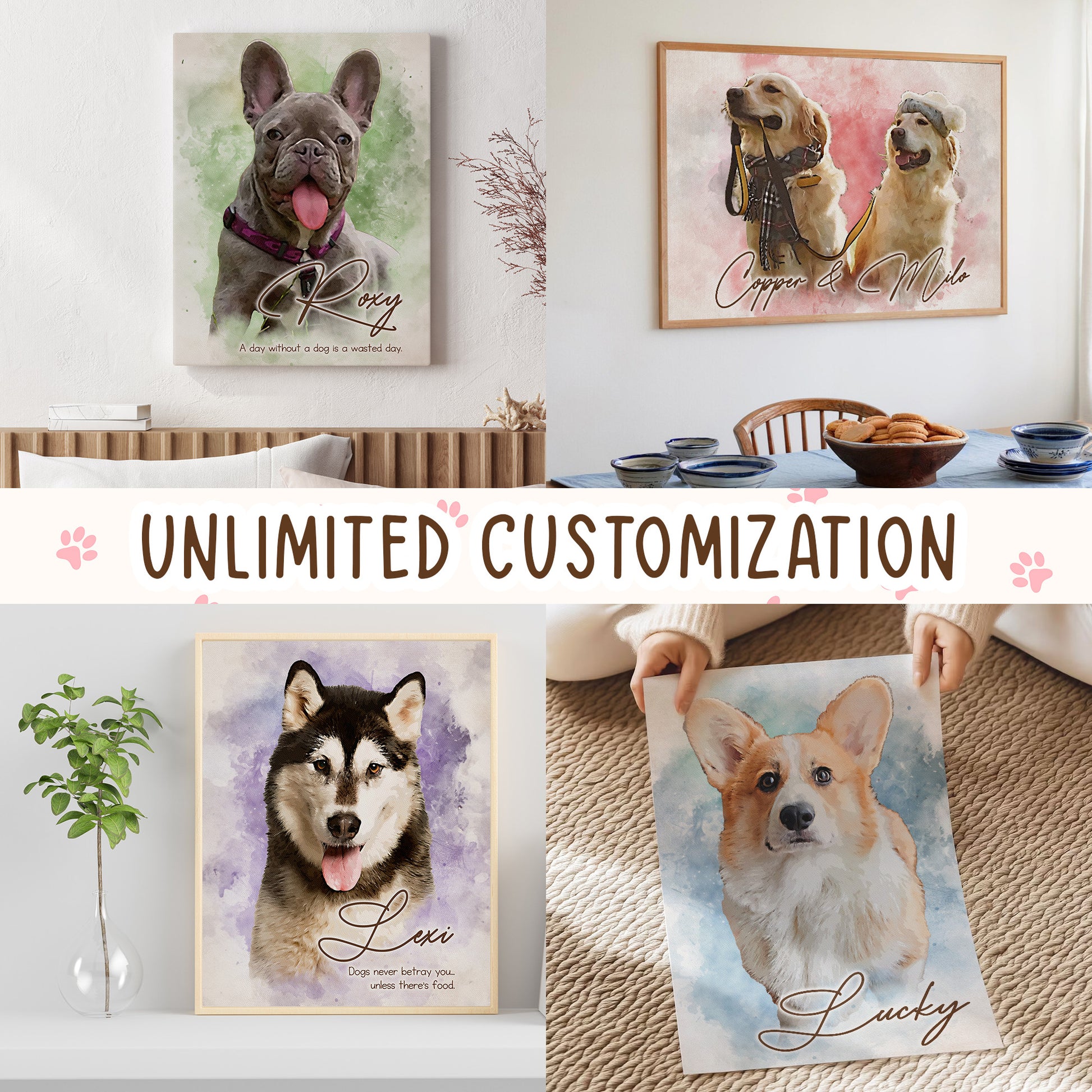 Personalized Watercolor Dog Portrait Wall Art, Unique Customized Pet Portrait Canvas for Dog Lovers