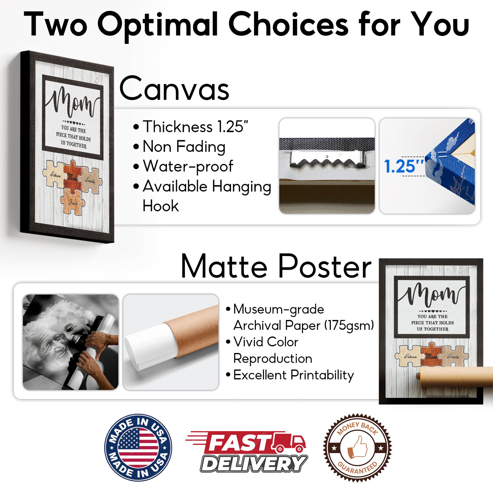 You Are The Piece That Holds Us Together Custom Mom Puzzle Piece Wall Art, Mother's Day Gift from Daughter Son